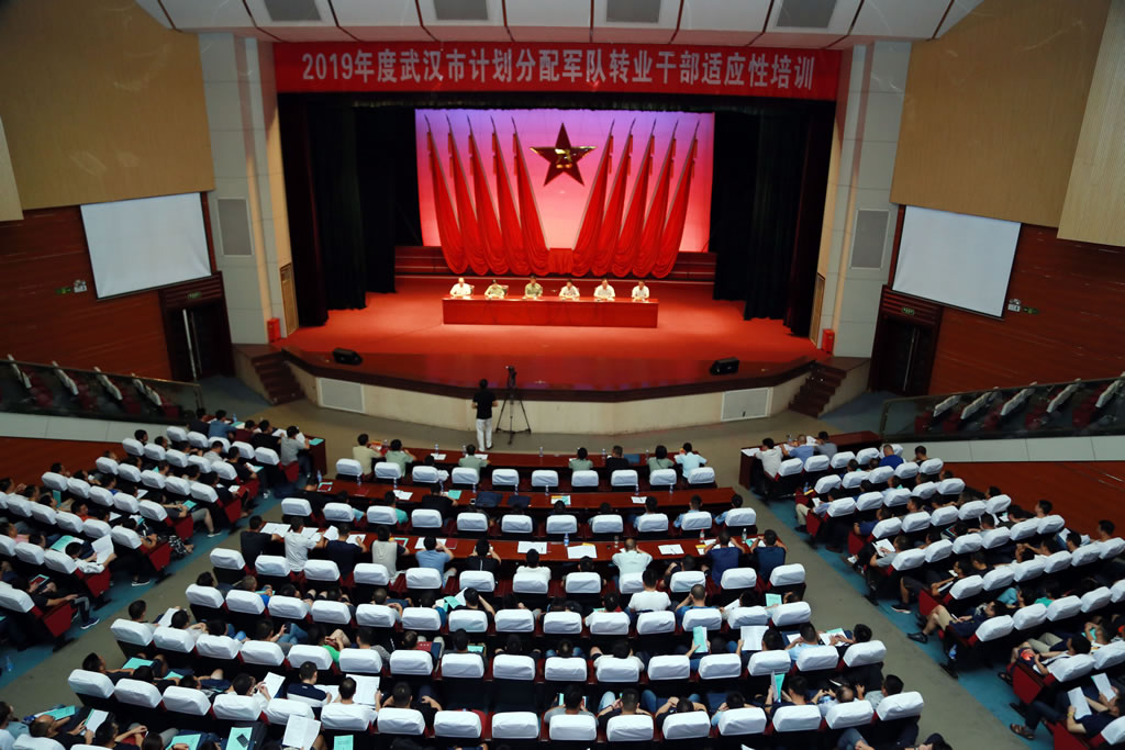 2019年9月16日,武汉市2019年度计划分配军转干部安置前适应性培训在国防科技大学信息通信学院礼堂顺利开班。武汉市退役军人事务局局长马仁钊,国防科技大学通信信息学院副政委鲁春润,湖北省军区转业办副主任梅静出席开班仪式并讲话,武汉市退役军人事务局副局长李超主持开班仪式。