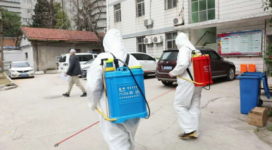 (图为红色服务队员在小区消杀)