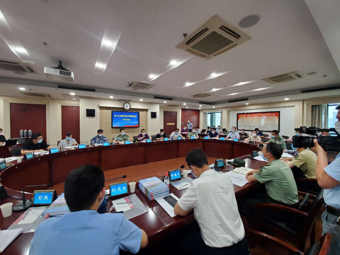 区委常委、区委宣传部长、区总工会主席刘传鸰主持汇报工作会,区政府副区长赵宏亮汇报我区创建省级双拥模范城区工作情况。区人武部部长杨贤礼、海军工程大学副政治委员戴晖、陆军勤务学院训练基地政治委员周振彦以及全区双拥工作领导小组成员单位主要负责人等参加有关活动。
