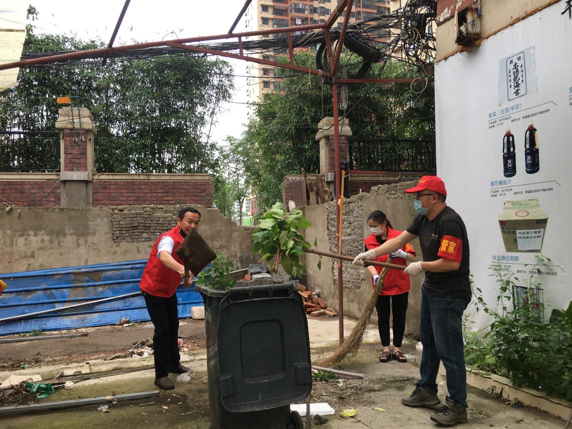 活动现场,大家兵分两路,一组人员撸起袖子对金墩巷等地的花坛、沟渠、墙面上的“牛皮癣”以及道路旁的共享单车进行清理,不放过任何一处死角,附近居民也受到鼓舞带动,纷纷加入到卫生清扫的队伍中;另一组人员在小区出入口,向过往居民宣传进出小区扫码、戴口罩等要求的必要性,提醒居民保持警惕,配合社区工作人员认真做好防疫措施。