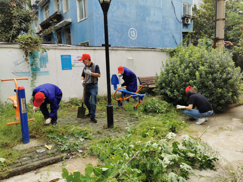 由于院内花草树木较多,容易滋生蚊虫,堆积垃圾,影响了环境卫生,大家就进行分工分组,互相配合,铲除杂草根、拔除花坛、路边的杂草,经过两个小时的共同努力,凌乱的花坛变得整洁,营院环境得到了很大改善。院内活动的休干、家属看到后非常高兴,说:“你们真是我们这些老年人最贴心的守护者,谢谢你们!”
