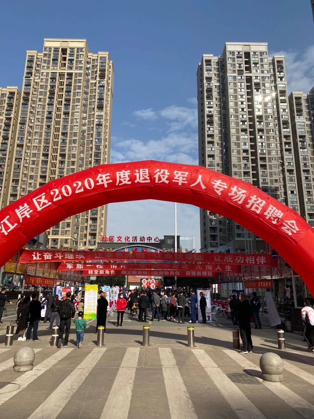 为深入贯彻以退役军人为中心的工作理念,近日,一场以“梦想启航,闪耀职场”为主题的江岸区2020年度退役军人专场招聘会,在塔子湖跃进社区党员群众服务中心广场举行,现场100余家单位提供3000余岗位,经双向选择,近800人达成就业意向。
